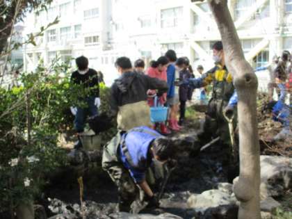 今日は、第一ビオトープの改修工事のため、3年生全員で協力してビオトープの土を運び出しました。みんな泥だらけになって、一生懸命バケツで泥を運びました。重そうにバケツを持っている子の手伝いをする子もいて、3年生の優しい姿もたくさん見られました。