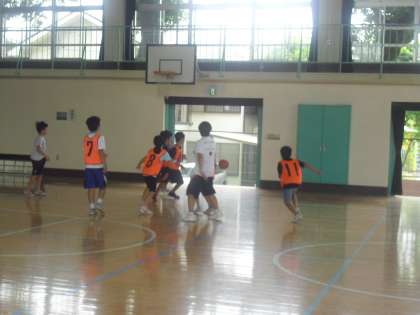1時間、体をいっぱい使って、ミニバスケットボールに挑戦しました。ドリブル・シュートなどたくさん練習をした後は試合です。
