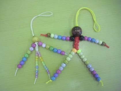 ひもとビーズを使って、フラフラ人形を作りました。細かい作業でしたが、一生懸命に取り組む子どもたち。かわいい人形ができあがりました。