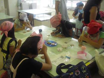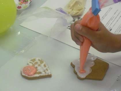 クッキーに思いのままにデコレーションしました。ピンク・水色・白・・・子どもたちのアイディアには驚くばかりです。クッキーがますますおいしそうに見えますね。