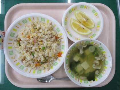 4月22日の給食は、チャーハン、わかめスープ、ニューサマーオレンジ、牛乳です。ニューサマーオレンジは、さわやかな酸味とほのかな甘みが特徴で、初夏を感じさせてくれるくだものです。産地によって、日向夏や小夏とも呼ばれています。