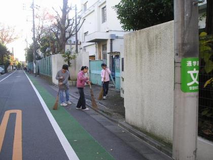 毎年恒例の6年生による奉仕活動、落ち葉はきが始まっています。朝、いつもより早く登校して学校の周りをきれいにします。
