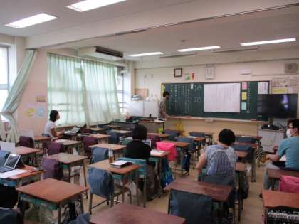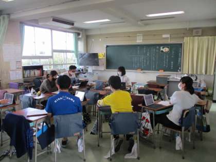 9月22日に行われた校内研究会、模擬授業と協議の様子です。授業改善に向けて、皆で力を合わせて取り組んでいます。