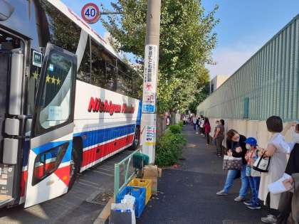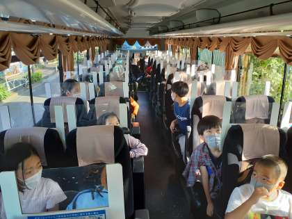 晴天の中、5年生は川場移動教室に元気に出発しました。大勢の保護者、先生方に見送られ、みんなで最高の思い出を作ってきたいと思います。