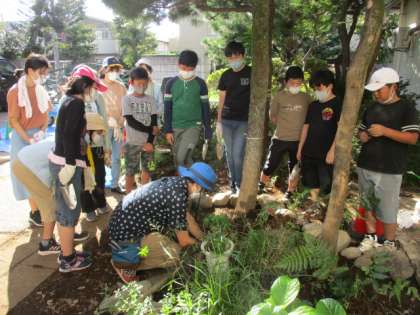 ゲストティーチャーの方をお招きして様々なことを学びをしました。自然の多様性を維持する意義についての講義。校庭の植栽の種類について教えていただく活動。希少な植物を正門前に植える活動。身近な自然から学ぶ、実りある活動となりました。
