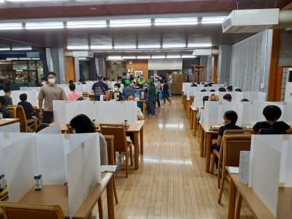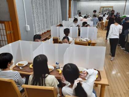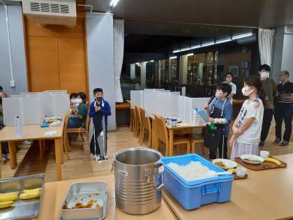 食事係が力を合わせ、配膳をし、おいしく夕食をいただきました。
