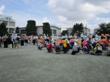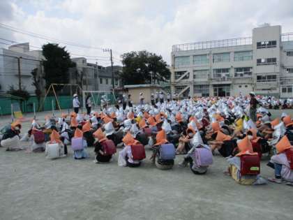 10月9日(土)、引き取り訓練を行いました。東海沖地震の警戒宣言が発令された想定で、今回は校庭で引き取っていただきました。保護者の皆様のご協力のおかげで、整然と、スムーズに訓練を行うことができました。ありがとうございました。
