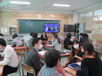 10月27日(水)は、校内でICT研修会を行いました。Teamsやロイロノートを授業の中でどのように使うと効果的か、などについて、実践事例や意見を出し合いました。