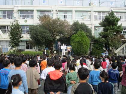 11月1日(月)の全校朝会で、歯のポスターコンクールで入賞した児童の表彰を行いました。入選したポスターも、全校児童に向けて披露しました。