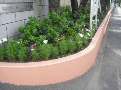 ○主事さんたちのペンキ塗りのおかげで、プール壁面や玄関周辺がきれいになりました。