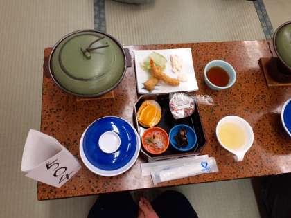 お風呂を上がって、身も心もさっぱりしての夕食です。心を込めて作ってくださったホテルの方々に感謝していただきます。