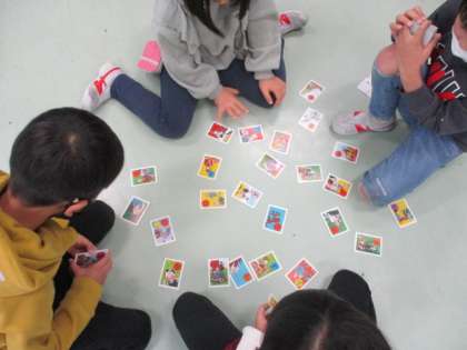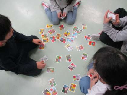 生活科「むかしあそび」でかるたとりを行いました。寒さも吹き飛ぶ熱戦で、盛り上がりました。これからも、こまやけん玉など、むかしあそびをやります。おうちでも楽しんでみてください。