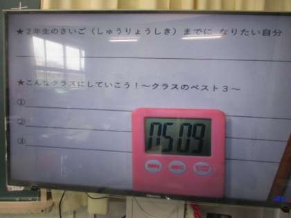 2学期の振り返りをした後に、3学期の目標を考えました。その後、クラスみんなで頑張りたいとこベスト3を考え、班ごとに意見を出し合う活動をしました。