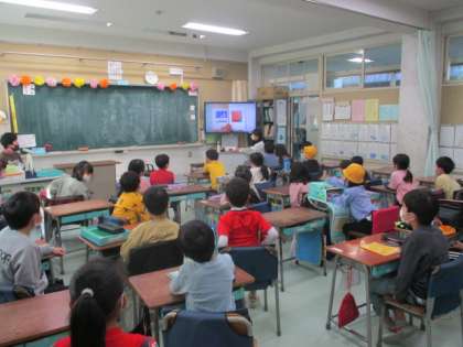 1月20日(木)に保護者の方による読み聞かせ「絵本の国」を行いました。おもしろいだじゃれの話に、子どもたちは夢中になって聞き入っていました。先生がだじゃれの説明をする場面もありました。