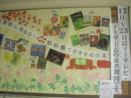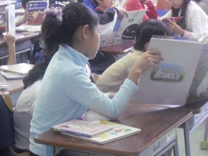 17日から28日まで、等々力小学校では読書週間を実施しています。その一環として20日(木)は朝読書の時間を利用して、「読み聞かせ交流」を行いました。高学年児童が低学年児童へ読み聞かせを行う取り組みです。異学年のすてきな交流ができました。