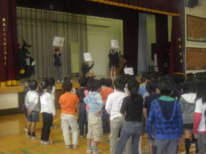 10月28日(金)児童集会が行われました。ハロウィンにちなんだ集会です。後期集会委員会の豊かな発想と計画・準備のすばらしさが光っていました。楽しい集会となりました。