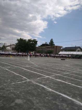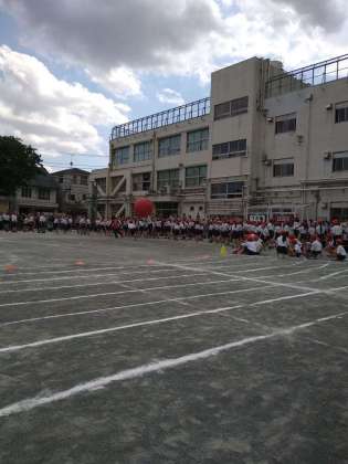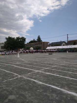 5,6年生の団体競技、地球は回る(大玉送り)です。勝敗の行方は、、、