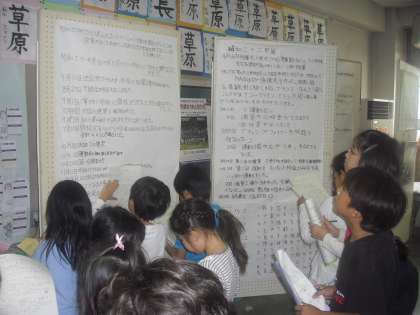 11月5日(土)、等々力小学校開校55周年をお祝いして記念行事を開催しました。まず最初は、代表委員会を中心に企画した「子ども祭り」です。各クラスが楽しい出し物を計画・準備しました。各クラスを回ったり、自分のクラスの出し物を担当したりと、子どもたちは自分の役割を立派に果たし楽しんでいました。すべてのクラスを回ると「おめでとう とどろき 55!」の文字が・・・