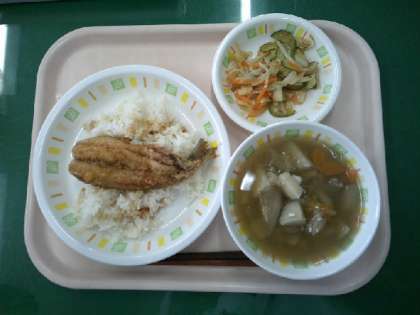 今日の給食は、いわしのかば焼き丼、サラダの梅ドレッシングかけ、けんちん汁、牛乳です。明日11日は「入梅」です。入梅とは「暦の上で決められた梅雨入り」のことです。実際の梅雨入りは、地域や年によって違いますが、昔はこの入梅の日を田植えの基準にしていました。ちょうどこの時期にとれるいわしのことを「入梅いわし」と呼び、1年のうちで1番おいしいと言われています。