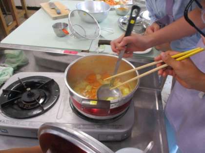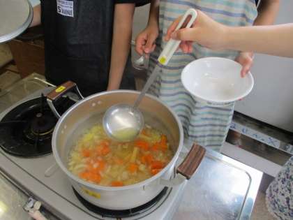 5年生は今週調理実習を行っています。作っているのは野菜スープです。