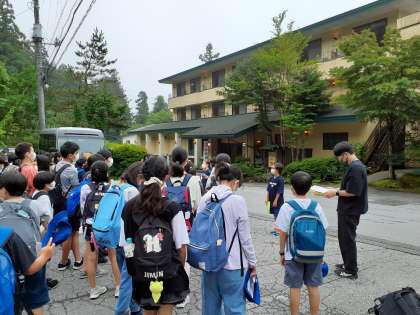 宿舎の風和里に到着しました。開園式で、宿舎でのマナーやモラル、ルールを守って生活します。予定より早く着いたので、ゆったりとした時間を過ごさせたいと思います。