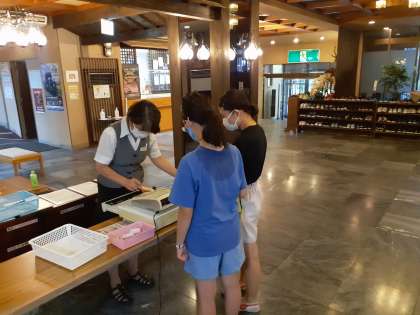 宿舎に帰ってきて、お土産を買いました。何にしようか、考えたり相談したりしながら購入していました。