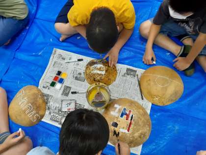子どもたちのアイデアや個性の光るふくべ細工ができ上がりました。