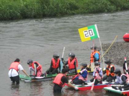 1,2,1,2とかけ声をかけて、チームワークよくこぎました。レースに参加したみなさん、頑張る姿が輝いていました。おやじの会の皆様、ご協力ありがとうございました。