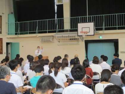 8月30日(火)、みしまの森学舎 合同学習確認会議を行いました。みしまの森学舎は東深沢中学校、東深沢小学校、等々力小学校、三島幼稚園。そして、今年度は近隣の幼稚園、保育園とも連携して教育活動を進めていきます。今日は、深沢幼稚園、深沢保育園、めぐみ保育園、ナオミ保育園の皆様もお迎えし、会議に参加していただきました。