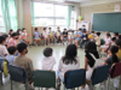 今日は給食後にキッズタイムを行いました。6年生が考えた楽しい遊びで、どの班も