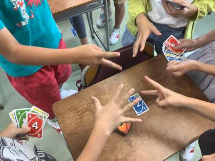 外で遊びたい気持ちを抑え、教室ではトランプ・UNO・お絵描き・ナンジャもんじゃ等で遊んでいます。二学期も工夫して遊ぶ姿が見られています。