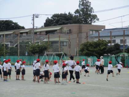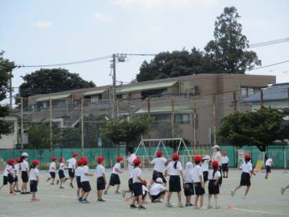 水泳の学習が終わり、久し振りに校庭で体育の学習をしました。今日は、いろいろな走り方をしました。けんけんぱ、後ろ向き走り、スキップなどを、楽しみながら行いました。
