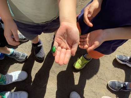 9月16日(金)に、三島公園に夏探しに行きました。様々な植物や生きものを見つけて、夏探しを楽しみました。草むらから虫の鳴き声や羽音が聞こえると、みんなで耳をすませて虫の姿を探しました。