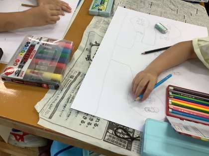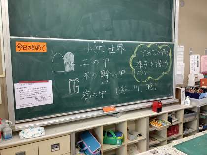 子どもたちは、小さな生き物(あり・リス・ネズミ等)を思い思いに描いていました。出来上がりがとても楽しみです。