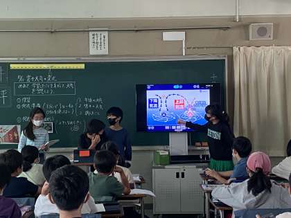 5年生は,理科「雲と天気の変化」の学習をしています。雲の動きや天気との関わりを,実際に観察したり,インターネットで検索したり,様々な方法で学習を進めました。学習の最後には,学習したことを生かして,今後の天気を予想しました。