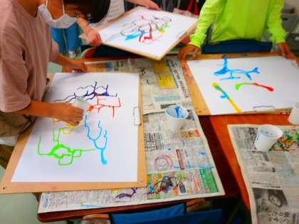 図工「絵の具をたらした形から」の学習で