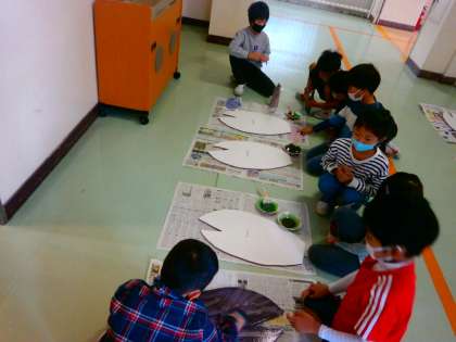 それぞれ思い思いに作ったり、協力して塗ったりと楽しみながら活動し、