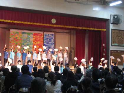 とどろきフェスタ 5年生の発表、「等々力の四季 春夏秋冬」の様子です。