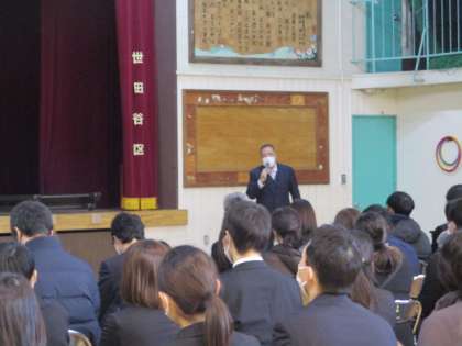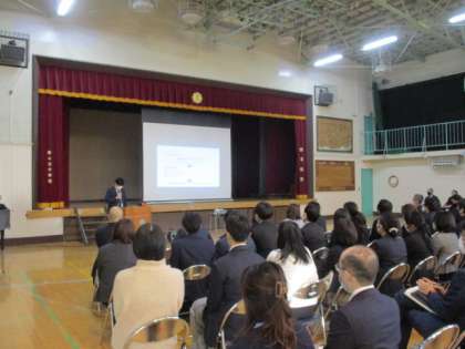 全体会では、等々力小学校の校内研究の取組、三島幼稚園の研究の取組についての発表が行われました。幼・保・小・中の連携を確認し、お互いの学びが深まりました。