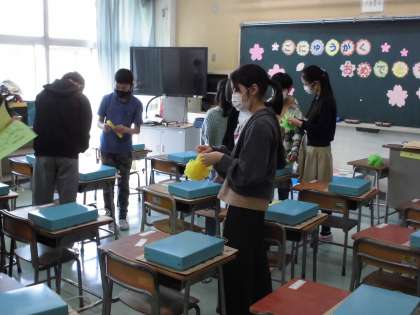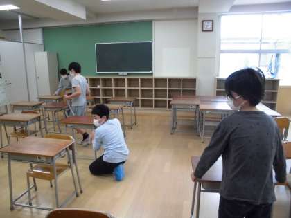 6年生の前半のお仕事は各教室の準備。学級増や教室の移動もあり、机、いすを大量に運んでくれました。