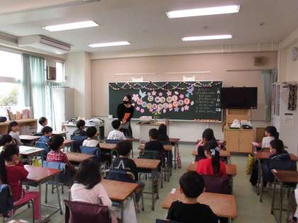 1時間目校内をまわっていると、1年生は、先生の話をよく聞いて、よい姿勢が素晴らしかったです。あいさつも素晴らしいと感じました。これから一つ一つ小学校の生活を覚えていきます。