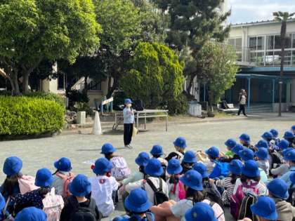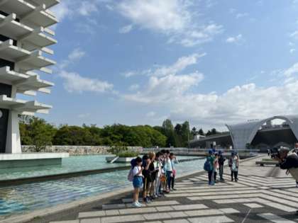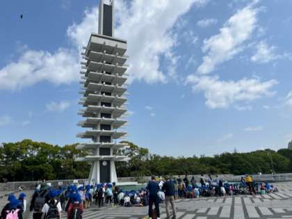 無事に駒沢公園に到着しました。出発式の司会の4年生の進行が素晴らしいと感じました。さすが4年生ですね。班ごとに記念写真。これからスタンプラリーに出発します。