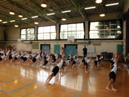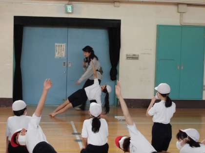 今日は先週よりぐっと気温が低く、肌寒い天気ですが、4年生、5年生が元気に体育の学習をしました。4年生は2クラス合同でリレーの学習をしました。上手なバトンパスに「ナイス!」という声が響いていました。5年生は運動会へ向けての練習を学年でしました。まだ初回ですが、組体操の一人技をどんどん覚えていました。お手本の子も素晴らしく、運動会での表現が楽しみになりました。