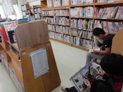 等々力小は本を借りた後、クラス全体でその場で読める図書のスペースがありません。子どもたちには申し訳ない思いでいっぱいですが、2カ所にブックコーナーがあり、たくさんの本があります。司書の先生に貸出し受付をしていただき、みんな嬉しそうに本を借りていきました。よい本とたくさん出合ってほしいなぁと思います。