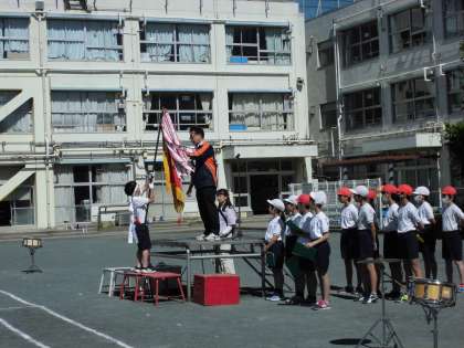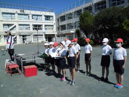 今日は運動会の全体練習がありました。計画委員会のみなさんの進行による開・閉会式の練習では、団長による優勝旗、準優勝楯の返還や、児童代表の言葉、得点発表などの練習をしました。最後に応援合戦の練習です。気合の入った応援団の態度や声に応え、赤白それぞれの組の子どもたちも精一杯の応援の練習をすることができました。観ていて涙が出そうになるくらいの素晴らしさでした。本番当日が楽しみです。