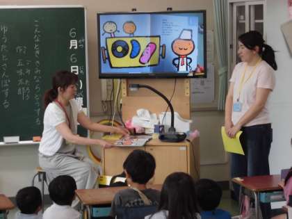 今日の朝は「えほんの国」のみなさんによる読み書きかせがありました。今回も様々な絵本の読み聞かせをしていただき、1年生から3年生は絵本の世界に入り込んでいました。月に1回ですが、みんなとても楽しみにしています。えほんの国の皆様本当にありがとうございました。