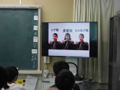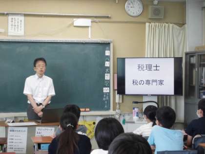 今日6年生は津谷税務会計事務所の方に講師としてご来校いただき、クラスごとに租税教室を行いました。社会科で政治の学習を終え、先日は社会科見学で国会にも行ってきた6年生。自分たちの願いを叶えるための政治。ではその費用はどこから?今日は楽しいクイズも交えていただきながら(ある国では、その昔『髭税』という税金があったそうです。)、税金についての学習を深めることができました。講師の津谷税務会計事務所の先生、ご多用の中ありがとうございました。