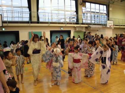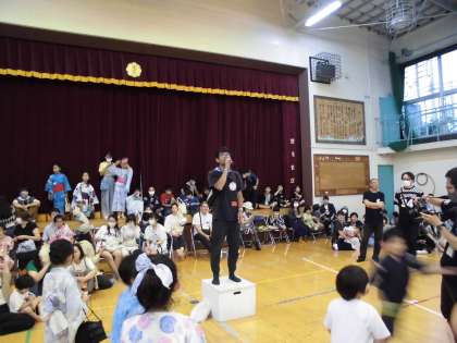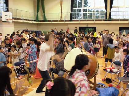雨になってしまい後半は急遽体育館に場所を移しての盆踊り大会。浴衣を着た子どもたちも多く、お祭りに花を添えてくれました。ご指導いただきました高橋恭子先生、市川家の皆様ありがとうございました。今回も、等々力小学校スローガン、全ては子どもたちのために〜One for children. All for children.〜を体現いただきました。関係者の皆様、本当にありがとうございました。