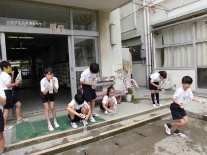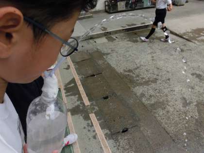空気と水の性質を学習した4年生。今日はその性質を利用した水でっぽうを作り、実際に水を飛ばして遊びました。ものの性質を理解できると楽しいおもちゃもすぐにできますね。みんなとても楽しそうでした。
