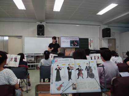 今日の課題は「音のかさなりを感じ取ろう」です。モーツアルトの「アイネ クライネ ナハトムジーク」の第1楽章を鑑賞して、感じたことを意見交換しました。バイオリン、ビオラ、チェロ、コントラバスの4種類の弦楽器が、ユニゾンで演奏しているところと、旋律の重なり方が変わったところを比べました。クラシックの名曲を味わうことができました。